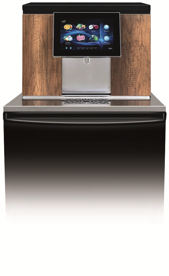 FULL-TOUCH operation, output height adjustable (option: FIX with adjustable glass platform) and payment systems (optional) such as coin changer or cashless, credit cards, SmartPhone-Pay, etc. with all the advantages of FRUCTOMAT!
